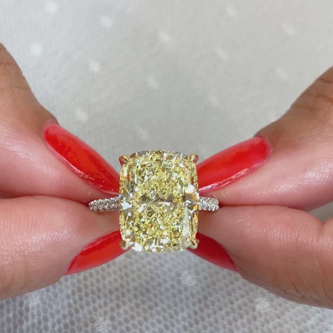 • Bold 7.50ct Fancy Yellow cushion-cut center