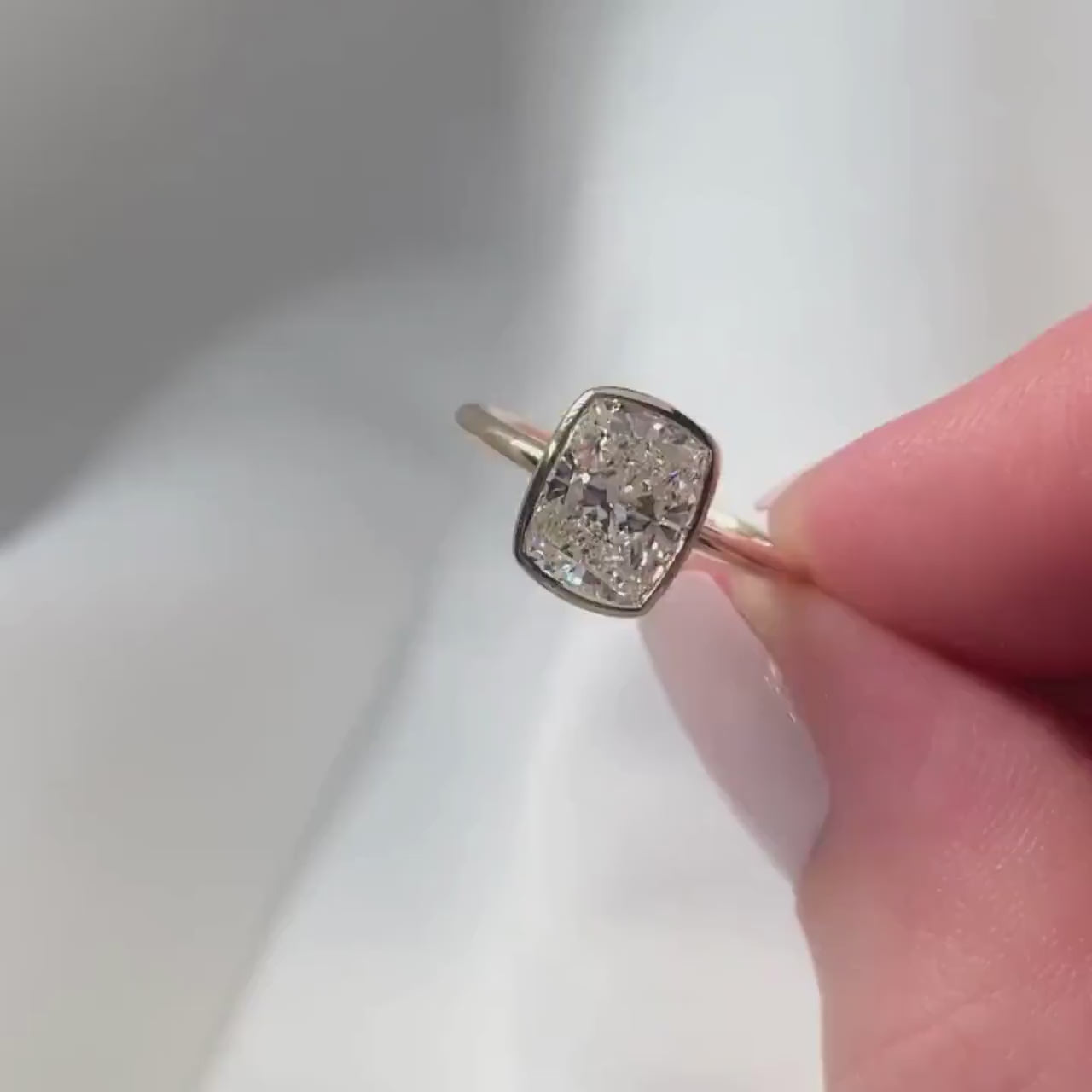2.00ct Cushion Lab Grown Diamond Bezel Engagement Ring | IGI Certified | DEF Color | VVS Clarity