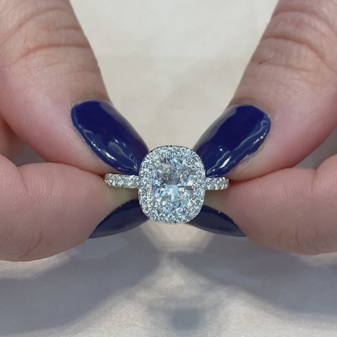 Elegant 1.90tcw Cushion Lab Diamond Halo Engagement Ring | IGI Certified | White Gold
