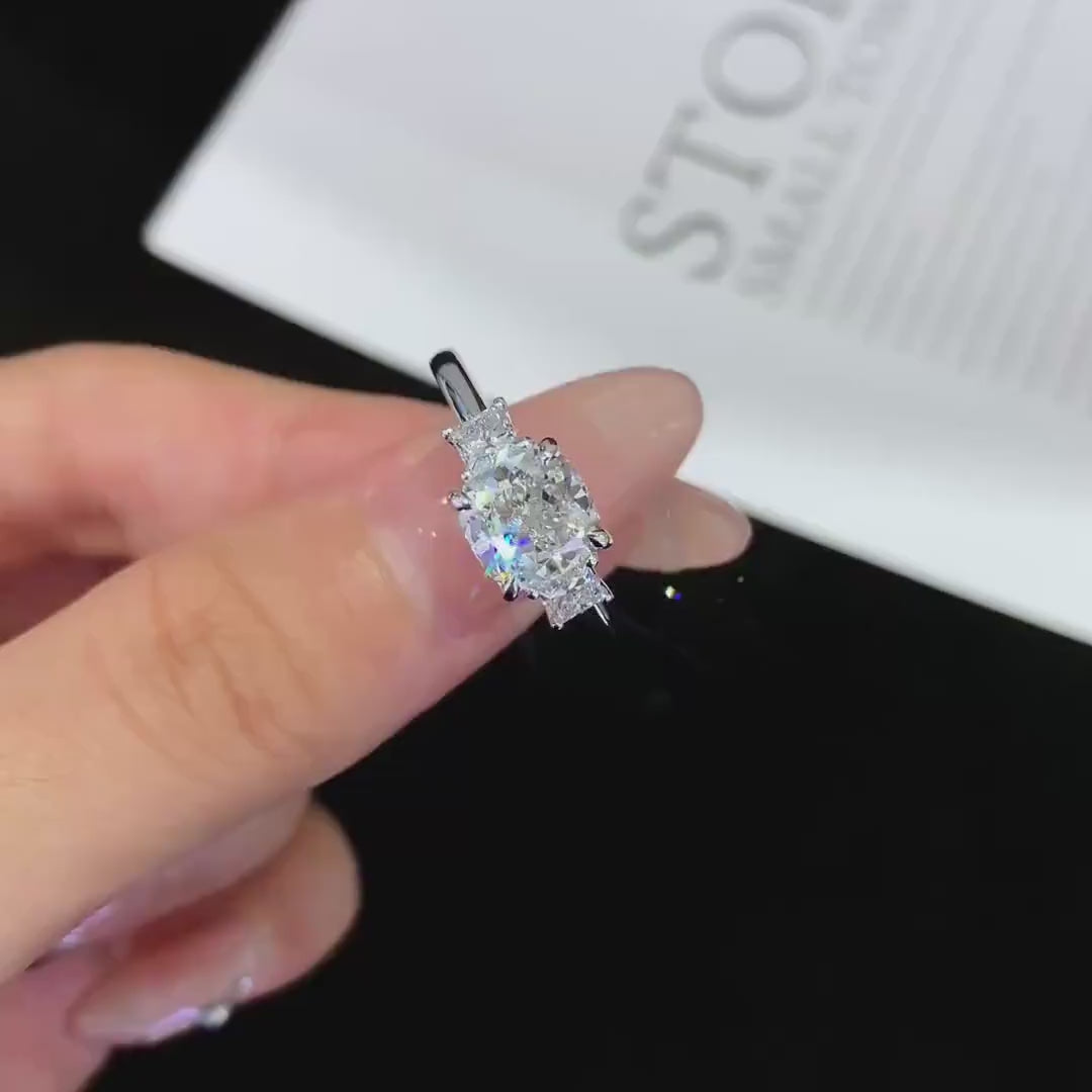 Cushion 2.50tcw Lab Diamond Three Stone Ring with Princess Sides | IGI Certified | D-E-F | VVS–VS
