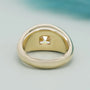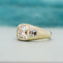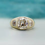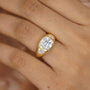 This handcrafted bezel-set three-stone ring features a 3.00ct cushion-cut center diamond and two trapezoid side stones in rich yellow gold. Ethically sourced and IGI certified, it’s the perfect blend of vintage elegance and modern craftsmanship.