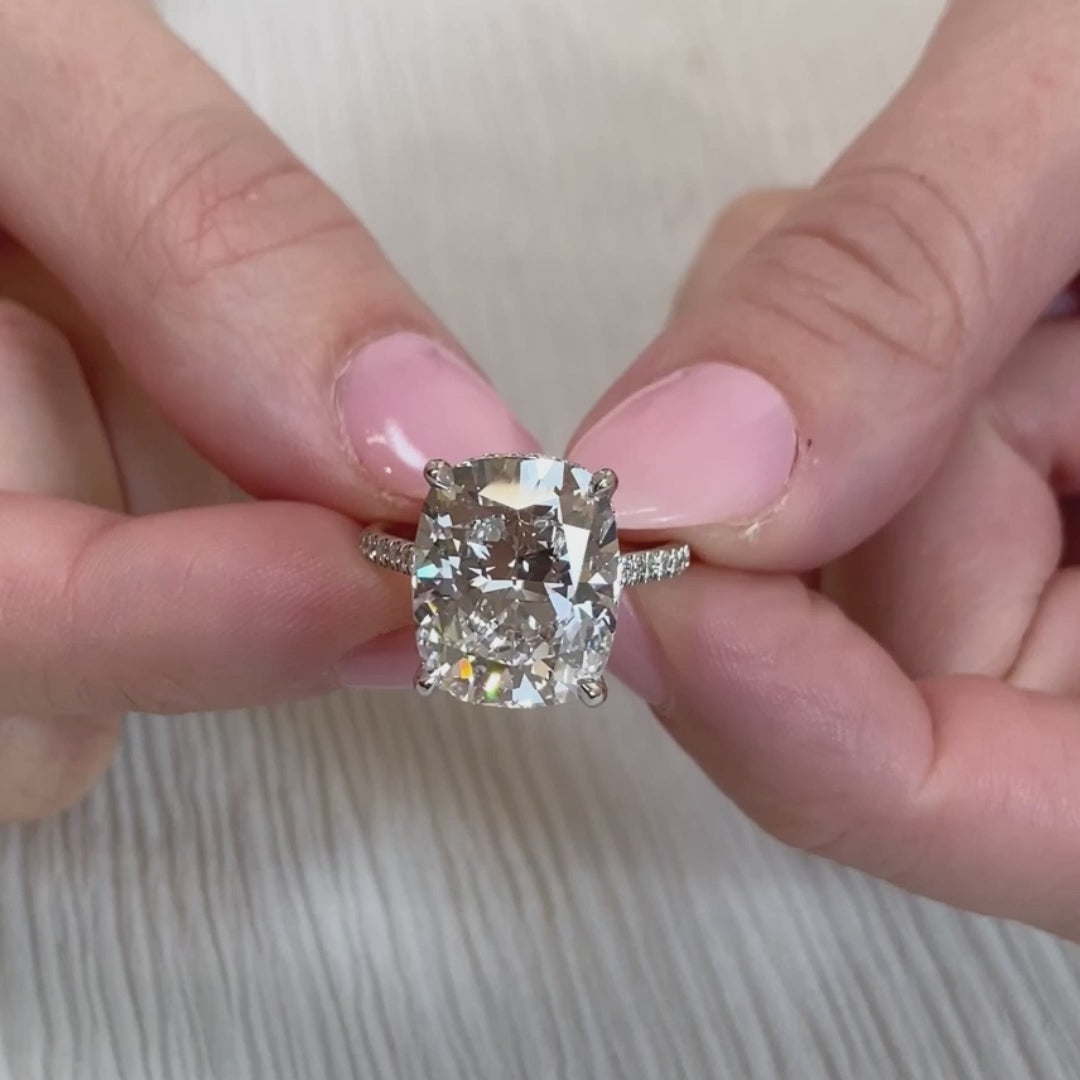 Cushion 8.50tcw Lab Diamond Hidden Halo Cathedral Ring | IGI Certified | D-E-F | VVS–VS