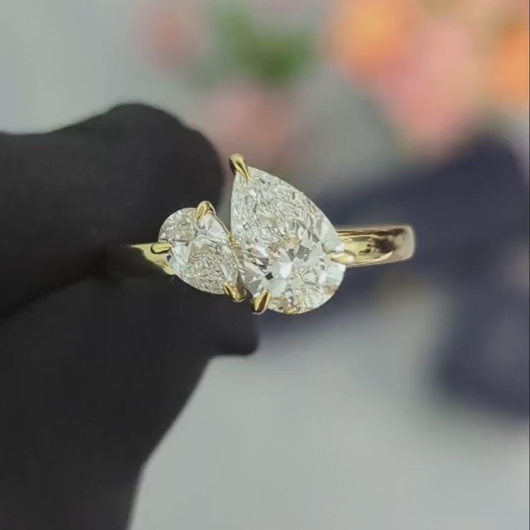Double Pear 2.50tcw Lab Diamond Toi et Moi Ring | IGI Certified