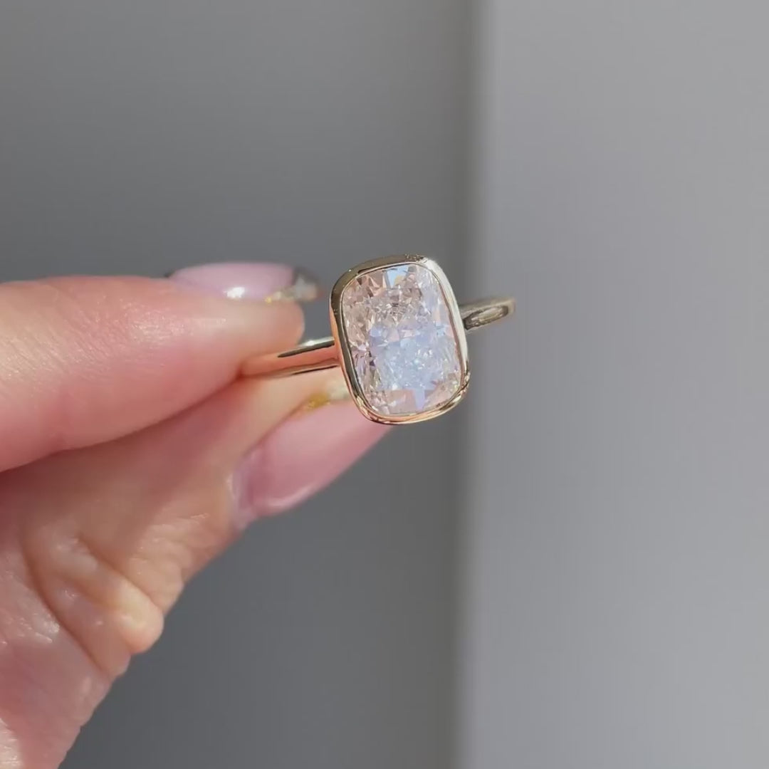 Elongated Cushion 2.50ct Lab Diamond Cathedral Bezel Engagement Ring | IGI Certified