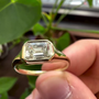 This 1.00ct lab-grown emerald-cut diamond engagement ring features a bezel-set center in 10k, 14k, or 18k yellow gold. IGI certified, D–E–F color, VVS–VS clarity. Handcrafted, ethical, and customizable — a timeless ring with a modern conscience.