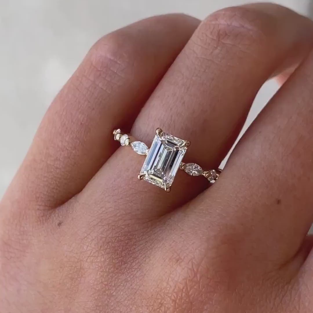 ✔ Emerald-cut center — sleek and sophisticated