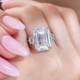 Emerald 10.00tcw Lab Diamond Three Stone Engagement Ring | IGI Certified | DEF VVS–VS Clarity