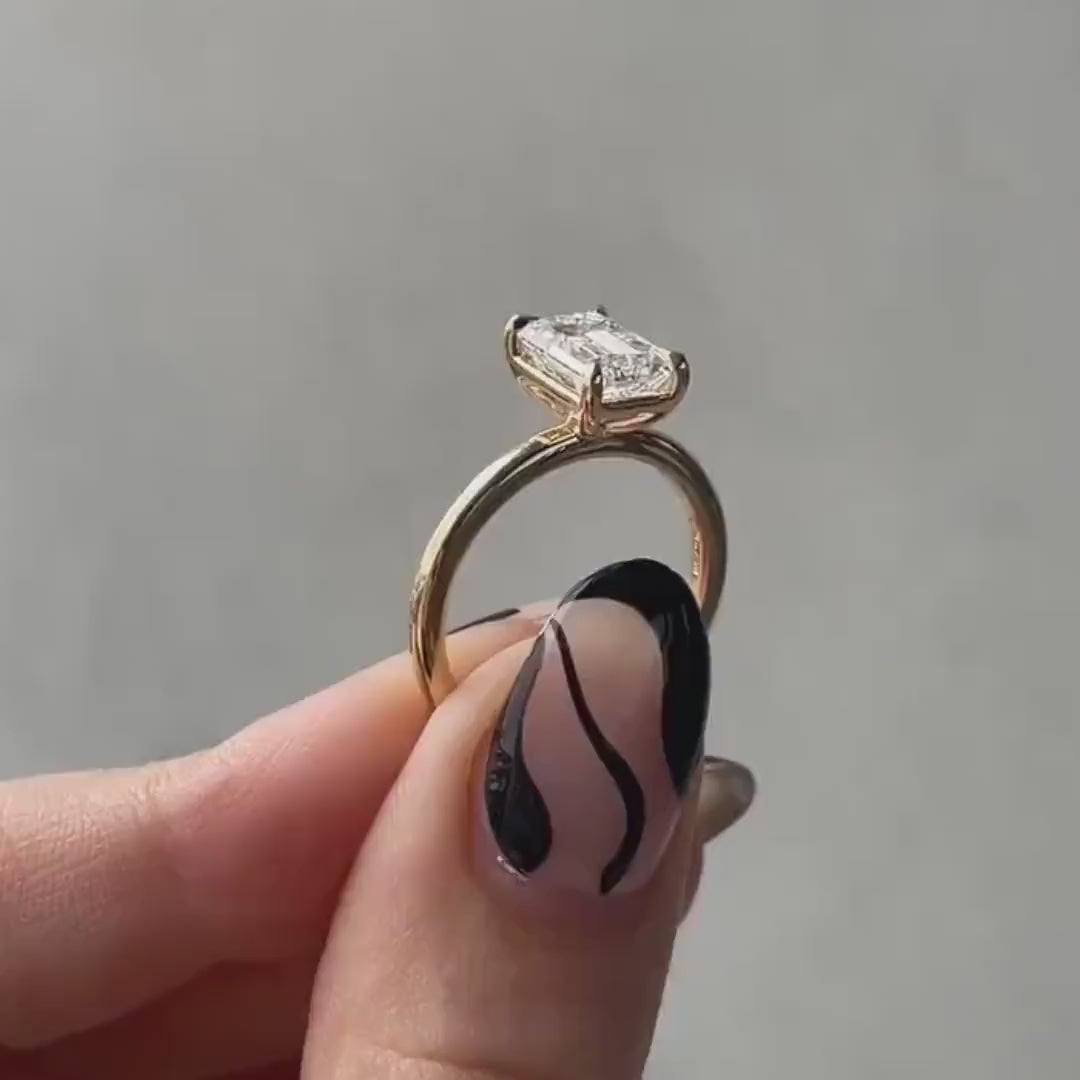 A timeless 2.00ct Emerald-cut lab-grown diamond solitaire ring, IGI certified and handcrafted in 10k/14k/18k gold. Sleek, minimal, and elegant — this ring makes a bold statement of love with a clean silhouette and ethical brilliance.