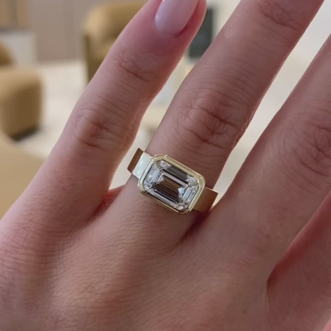 Emerald 3.00ct Lab Grown Diamond East-West Bezel Engagement Ring in Gold | IGI Certified