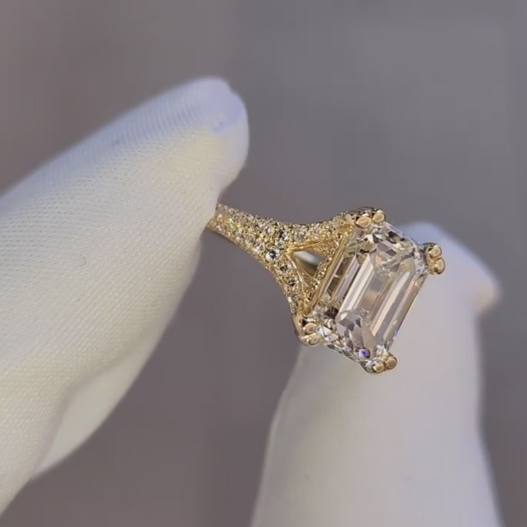 Emerald 3.50tcw Lab Diamond Pave Split Band Engagement Ring | IGI Certified | Double Prong