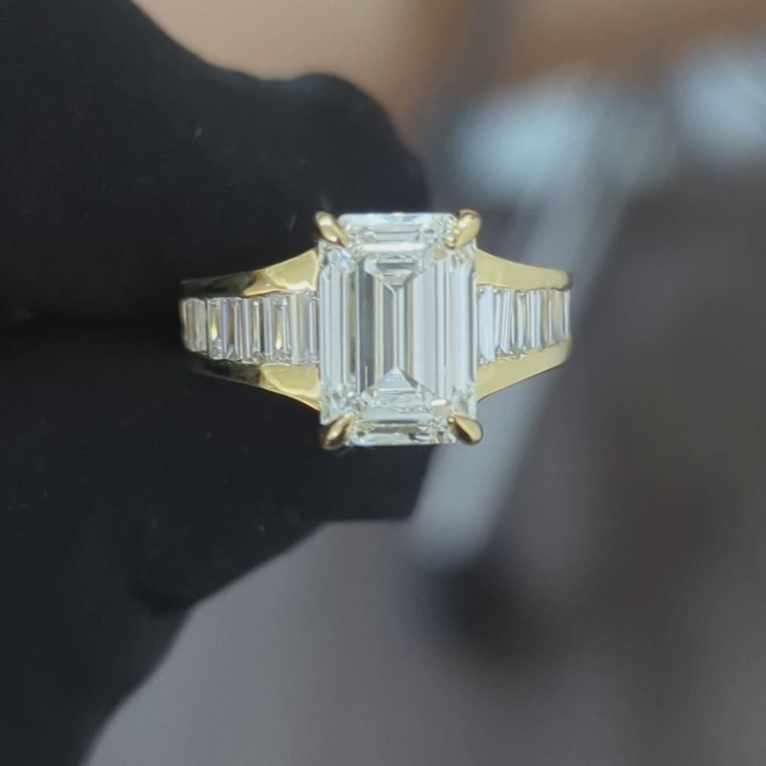 Emerald 3.65tcw Lab Diamond Ring with Baguette Sides | IGI Certified | D-E-F | VVS–VS | 10k–18k Gold