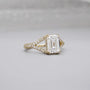 This Emerald 3.65tcw Lab Grown Diamond Engagement Ring is a breathtaking blend of brilliance, structure, and fine craftsmanship. The centerpiece is a stunning emerald-cut diamond, delicately set with a hidden halo and mounted on a split shank pavé band, offering a bold and graceful look from every angle.