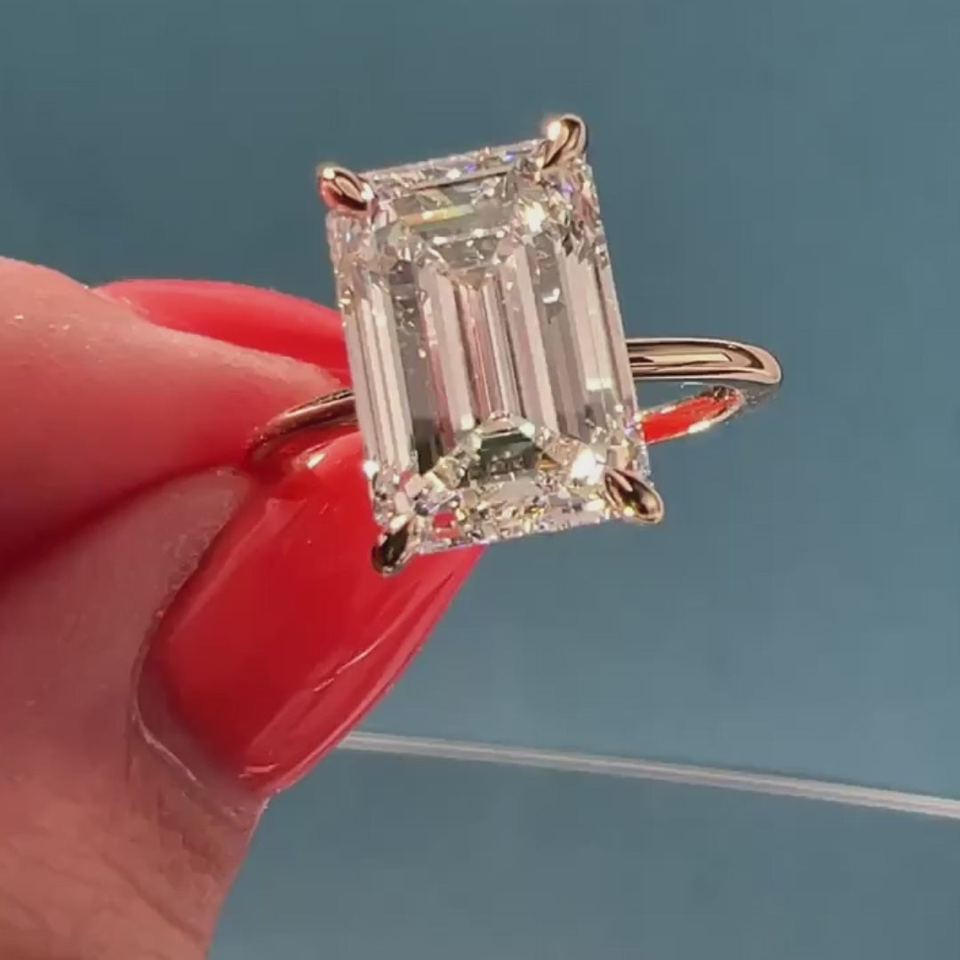 4.00ct Emerald Lab Diamond Solitaire Engagement Ring | IGI Certified | Yellow Gold