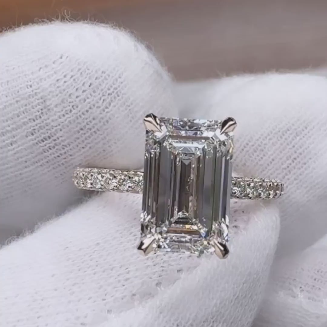 ✔ Show-stopping 5.00ct emerald-cut centerpiece