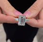 Stunning 7.00tcw Emerald Lab-Grown Diamond Three Stone Ring with a 6.00ct center and 1.00ct tapered baguette sides. IGI Certified, DEF color, VVS–VS clarity. Crafted in 10k/14k/18k white, yellow, or rose gold. A bold, elegant statement for your forever.