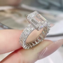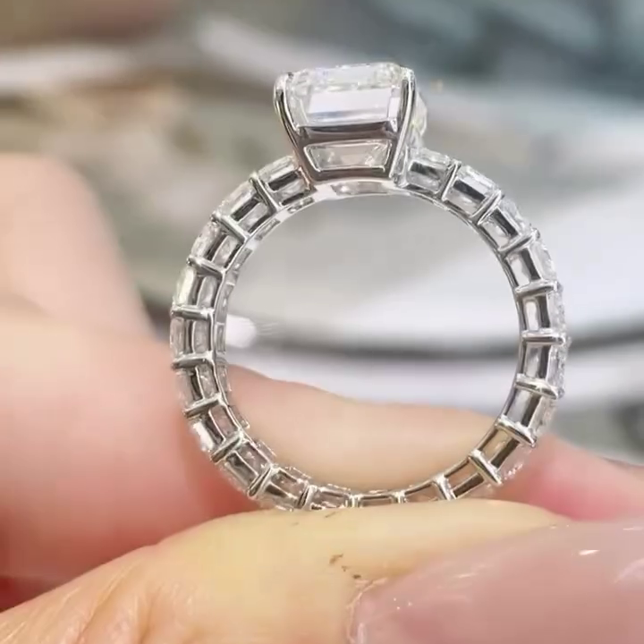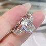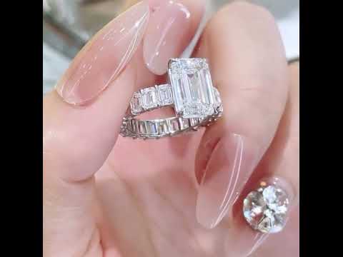 💎 Celebrate your love with this 8.00tcw Emerald Cut Lab-Grown Diamond Engagement Ring in a sleek platinum setting.