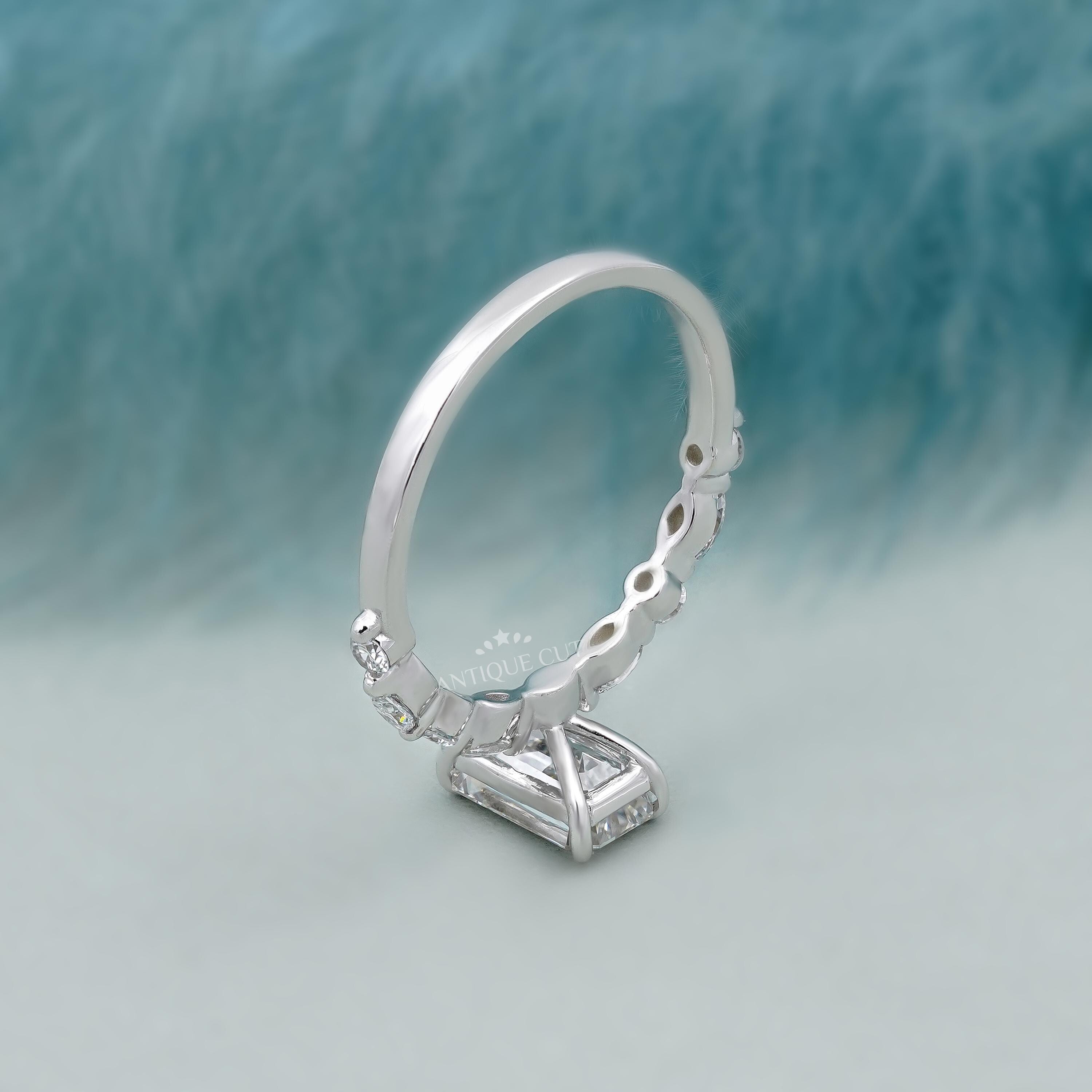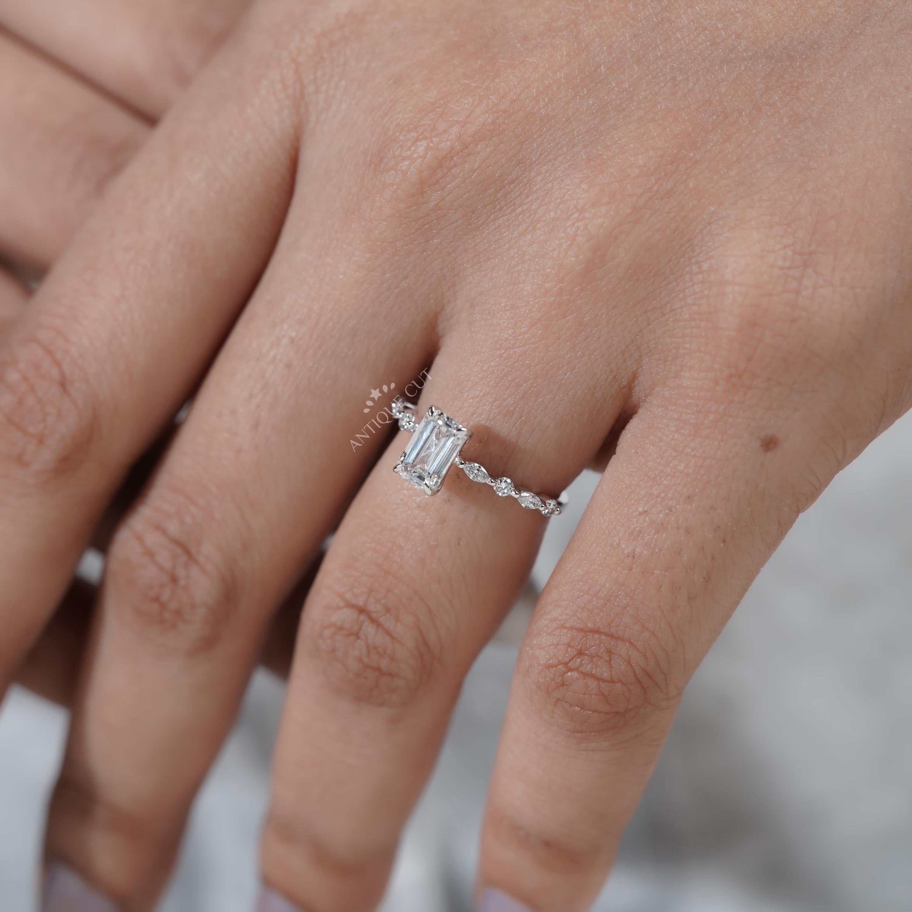 Emerald Cut Engagement Ring with Side Stones – 4 Prong Setting Diamond Ring | IGI Certified