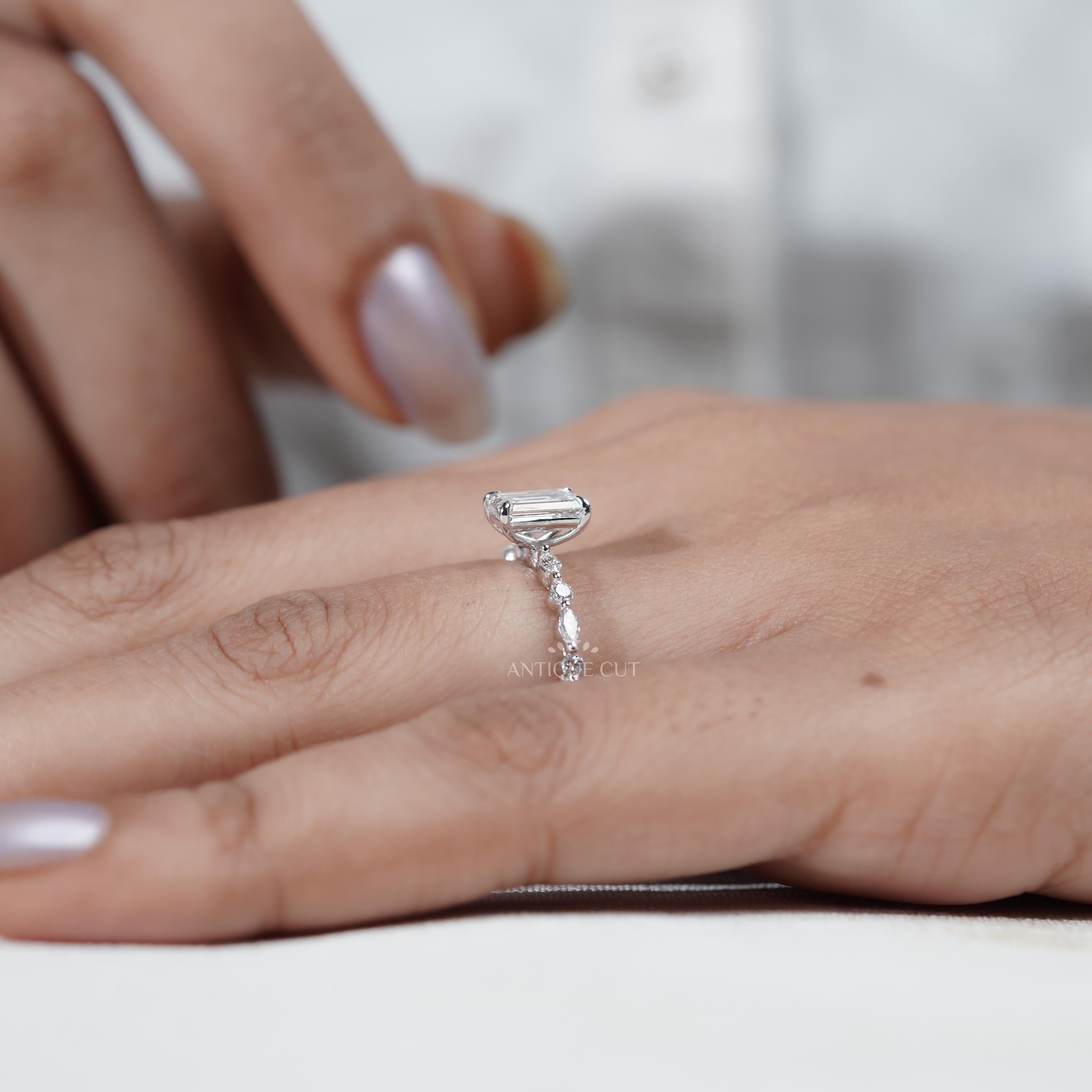 Each diamond is IGI certified, ensuring exceptional quality, ethical sourcing, and sustainable luxury. Perfect for engagements, anniversaries, or milestone celebrations, this Emerald Cut Engagement Ring combines classic craftsmanship with contemporary style, making it a cherished heirloom designed to shine for generations. Its refined silhouette and sparkling side stones offer both sophistication and enduring beauty.