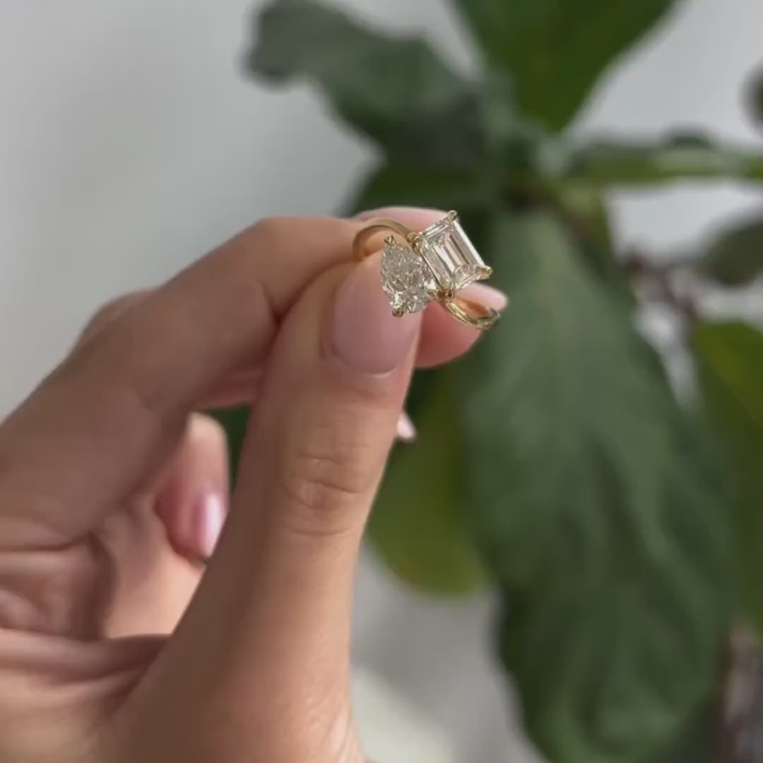 Emerald and Pear 2.20tcw Lab Grown Diamond Toi et Moi Engagement Ring | D-E-F Color | VVS–VS Clarity | IGI Certified