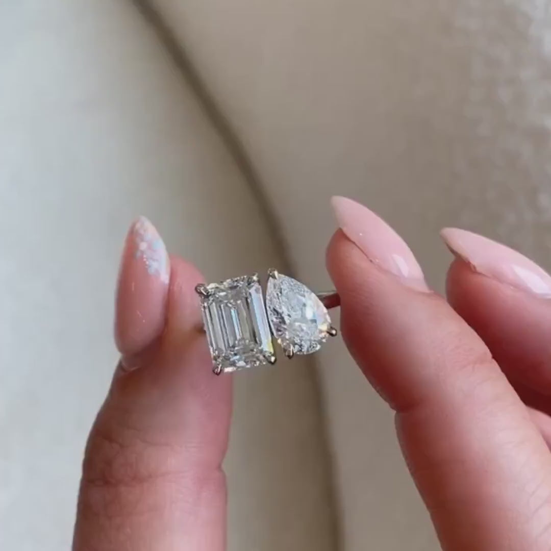 Emerald & Pear 5.00tcw Lab Grown Diamond Toi Et Moi Ring | IGI Certified | 14K 18K White Gold | DEF Color ,VVS Clarity