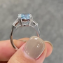 Make your proposal unforgettable with this 3.50tcw three-stone engagement ring. Featuring a 3.00ct cushion-cut Fancy Blue lab-grown diamond at the center, accented by 0.50ct EF-color tapered baguette side stones, this ring exudes luxury and elegance. Ethically crafted in 10k, 14k, 18k gold or platinum and IGI certified for quality, it’s a timeless symbol of sustainable love.