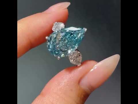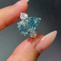 Fancy Blue Pear 7.00tcw Lab Diamond Ring | Three Stone | 6ct Center + 1ct Side Stones