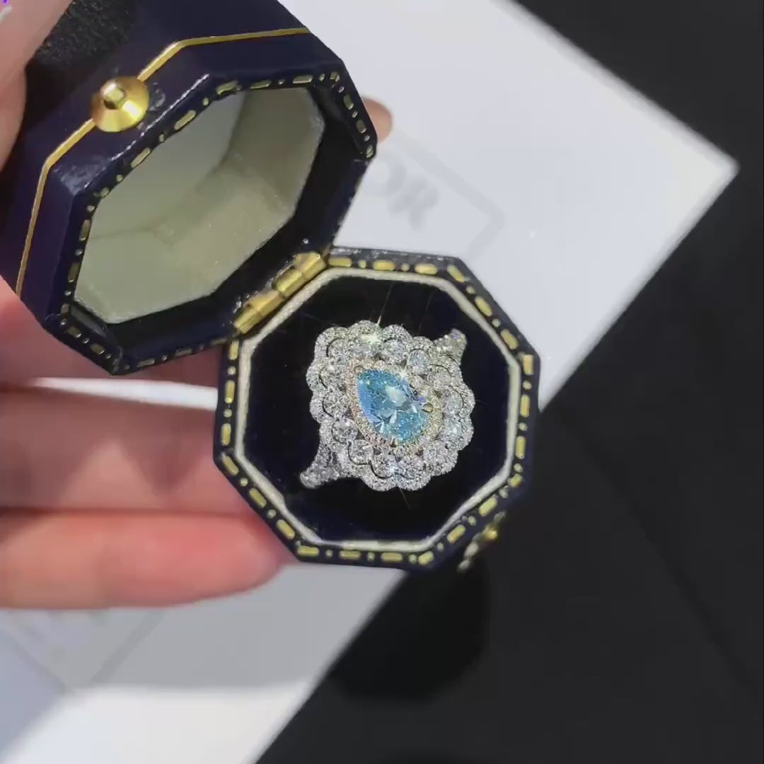 ✔ Rare Fancy Blue pear-cut center stone – 0.70ct brilliance