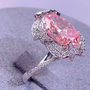 Dazzle with this 2.50ct Fancy Pink Oval Lab-Grown Diamond Starburst Halo Ring.
