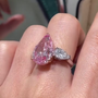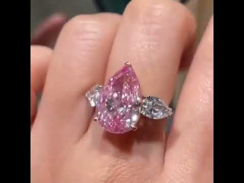 • Striking 6.00ct fancy pink pear center paired with 1.00ct white pear side stones for breathtaking contrast