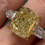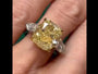 Fancy Yellow 6.50tcw Cushion Lab-Grown Diamond Bullet Side Stone Engagement Ring | IGI