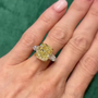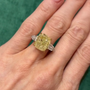 • Stunning 5.00ct fancy yellow cushion center stone for bold brilliance