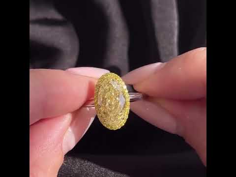 • 4.00ct Fancy Yellow Oval Diamond with vivid sparkle.