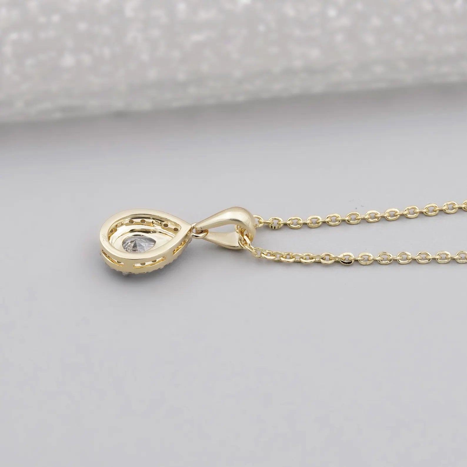 Pear Cut Halo Diamond Pendant With Lab Created Diamonds | Yellow Gold