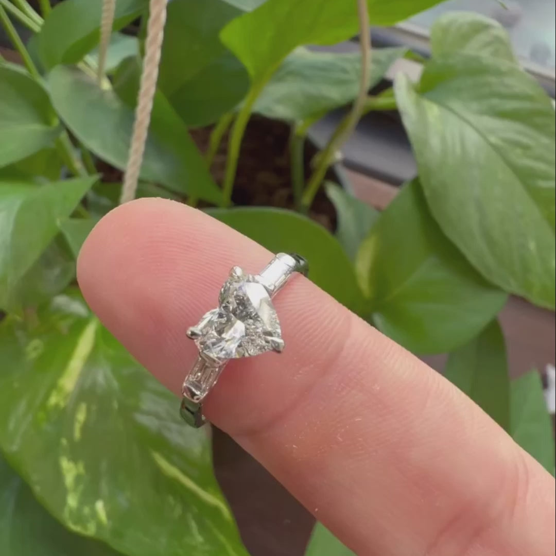 ● 1.00ct heart center + 0.40ct baguette sides, DEF, VVS–VS, IGI certified