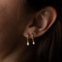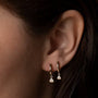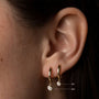Marrying two bestselling designs, our VRAI created diamond Knife-Edge Bezel Drop Huggie Hoop is a versatile accessory worn as a pair or solo. A subtle curve hugs the ear while our signature bezel setting bounces light in every direction.