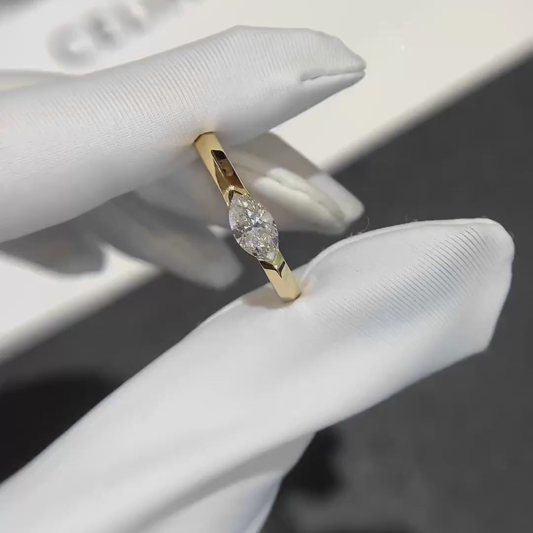 Marquise 0.50tcw Lab Diamond East-West Pave Solitaire Ring | IGI Certified | Yellow Gold