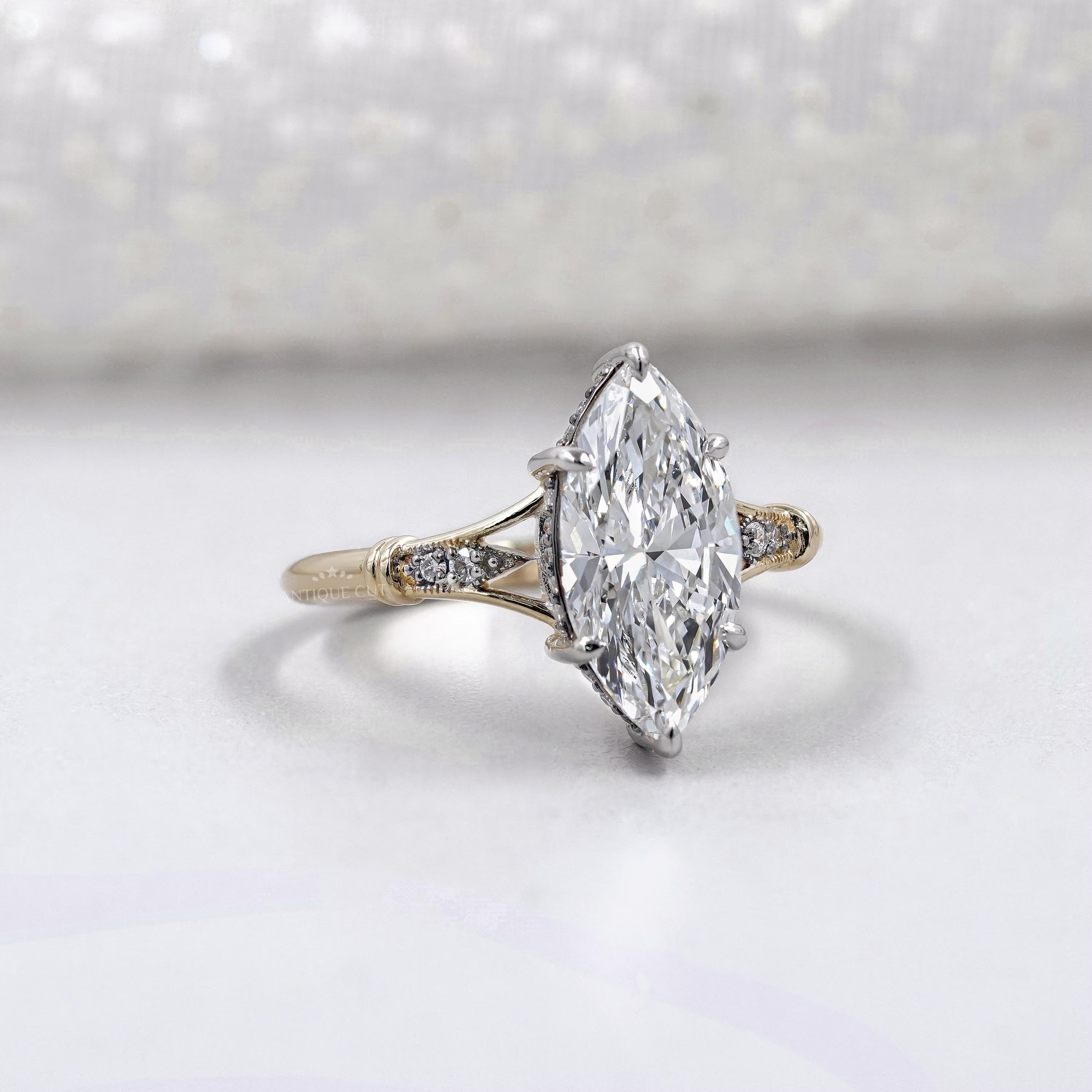 Marquise Cut 2.70tcw Lab Grown Diamond Engagement Ring | Split Shank Vintage Design | IGI Certified