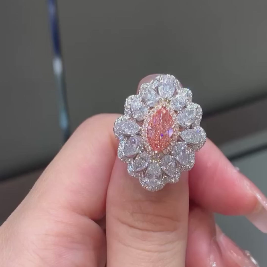 Celebrate your love with this stunning 3.50tcw Marquise Fancy Pink lab-grown diamond engagement ring. Featuring a flawless Marquise Fancy Pink-shaped EF and VS diamond set in 10k/14k/18k White gold, it's both eco-friendly and elegant. 𝐈𝐆𝐈-𝐜𝐞𝐫𝐭𝐢𝐟𝐢𝐞𝐝 diamond for your peace of mind, this ring promises timeless beauty and an ethical choice. Perfect for a forever promise.