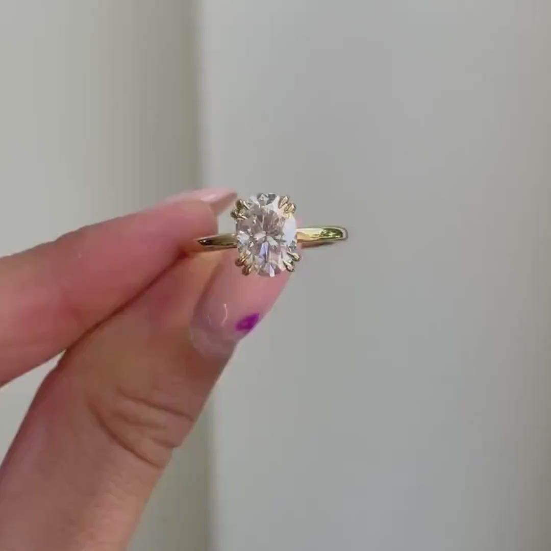 Elegant 2.00ct Oval Lab-Grown Diamond Engagement Ring in a refined double-tipped 4-claw setting. IGI Certified, DEF color, VVS–VS clarity. Custom-made in 10k/14k/18k gold or platinum — a minimalist yet timeless choice.