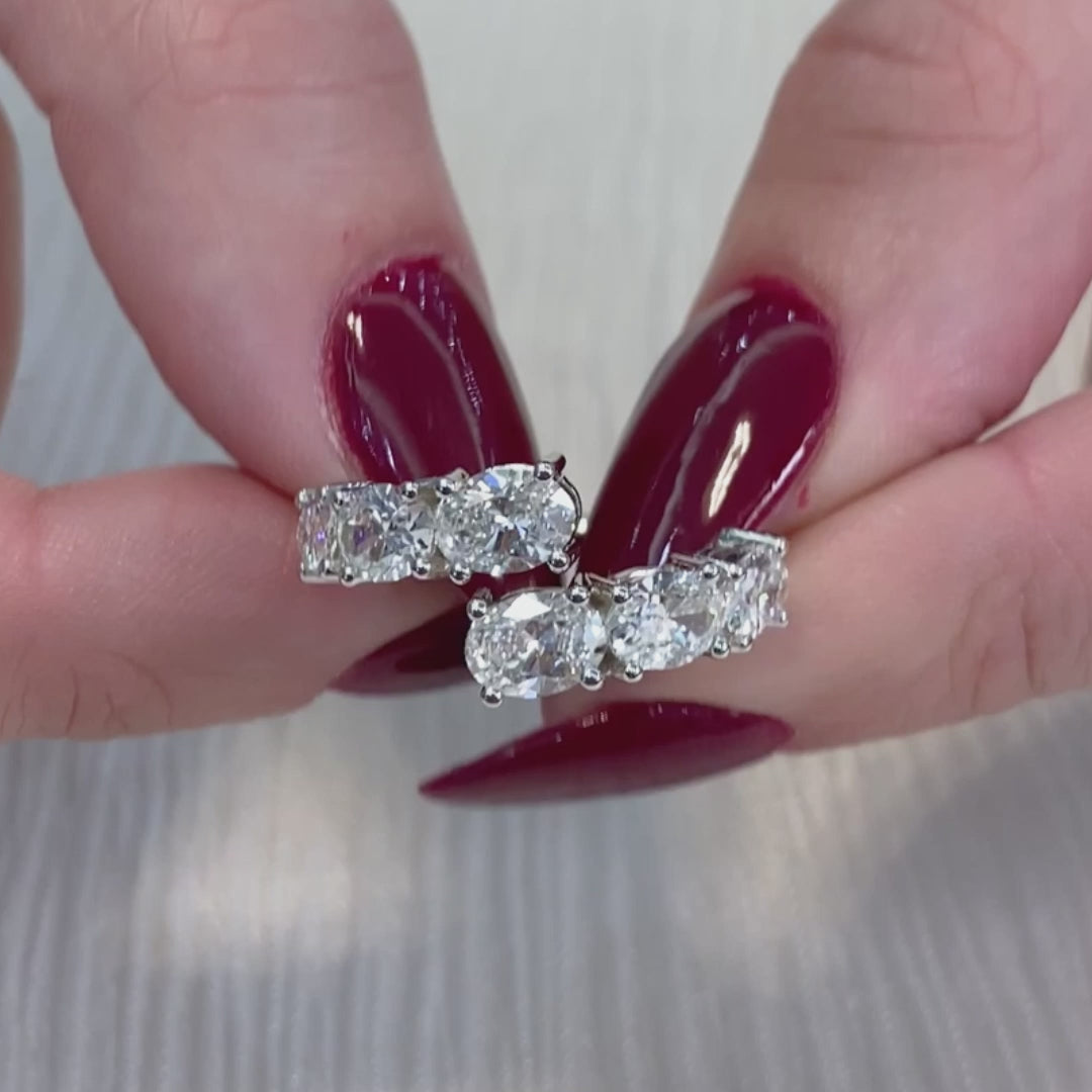 This 2.00tcw Oval-cut lab-grown diamond engagement ring features two brilliant oval stones in a flowing bypass design. Crafted in 10k/14k/18k white gold, the ring blends modern elegance with ethical luxury — a symbol of unity, balance, and everlasting love.