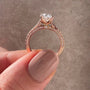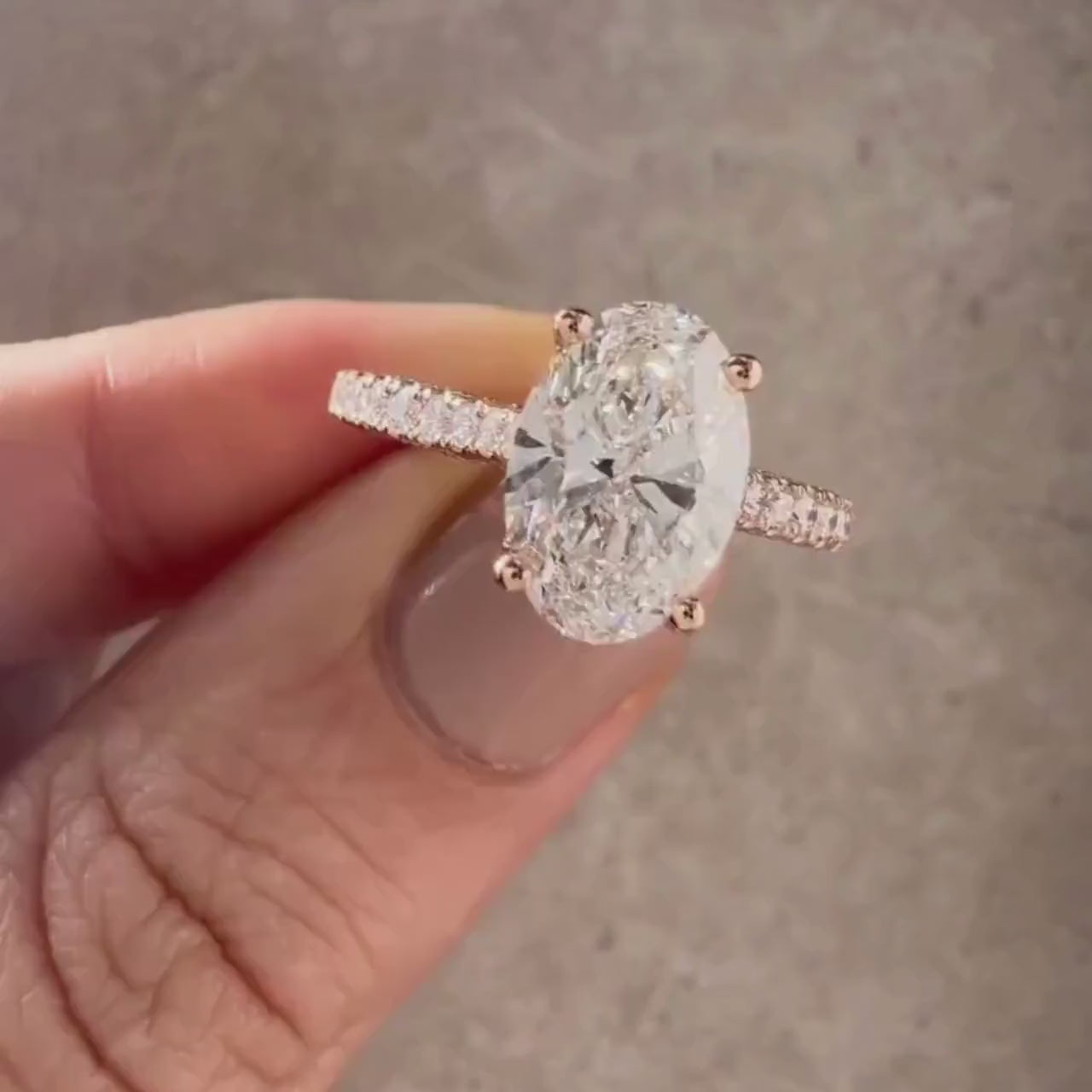 Timeless 2.00tcw Oval Lab-Grown Diamond Engagement Ring with 1.50ct center and 0.50ct pave side stones. Set in rose gold cathedral style, IGI certified, DEF color, and VVS–VS clarity. A sustainable and elegant symbol of your forever love.