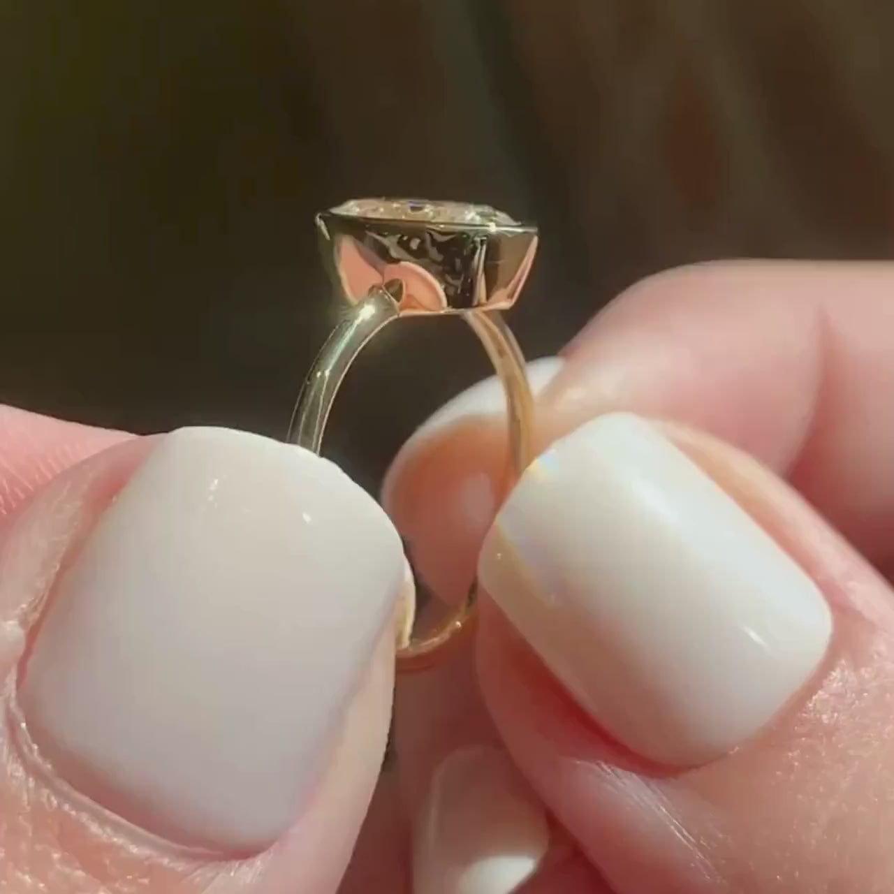Bold and elegant 2.00ct Oval Lab-Grown Diamond Bathtub Bezel Engagement Ring. IGI certified, D-E-F color, VVS–VS clarity. Fully encased bezel in 10k/14k/18k gold for a modern, smooth look. Ethically made and customizable — perfect for your forever moment.