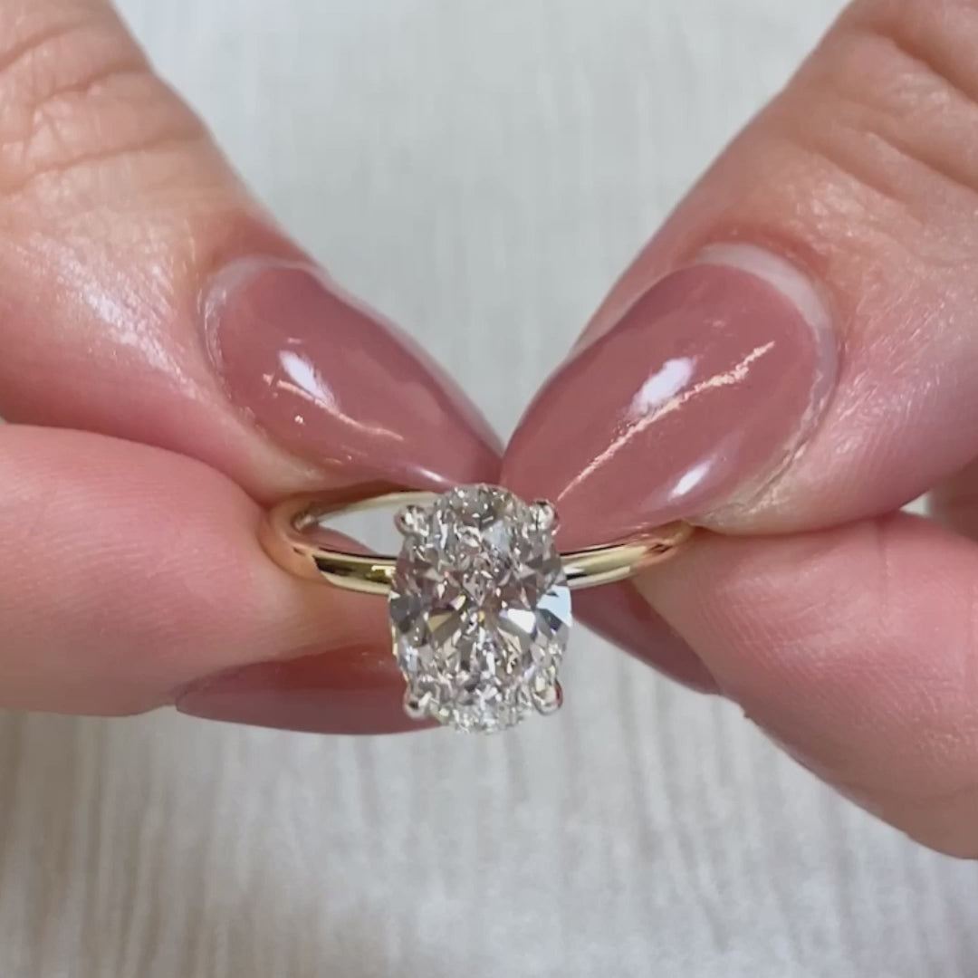 2.10tcw Oval Lab Grown Diamond Ring | Two-Tone Solitaire | IGI Certified | White & Yellow Gold