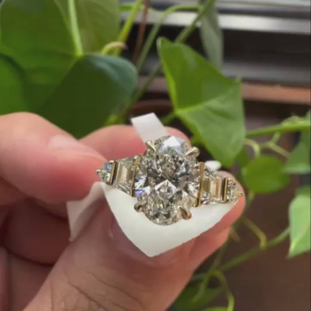 ● 1.50ct oval center with 0.70ct side stones (trapezoid + round)