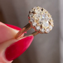 • Features a brilliant 1.50ct oval center stone enhanced by a sparkling 0.70ct round diamond halo for maximum brilliance
