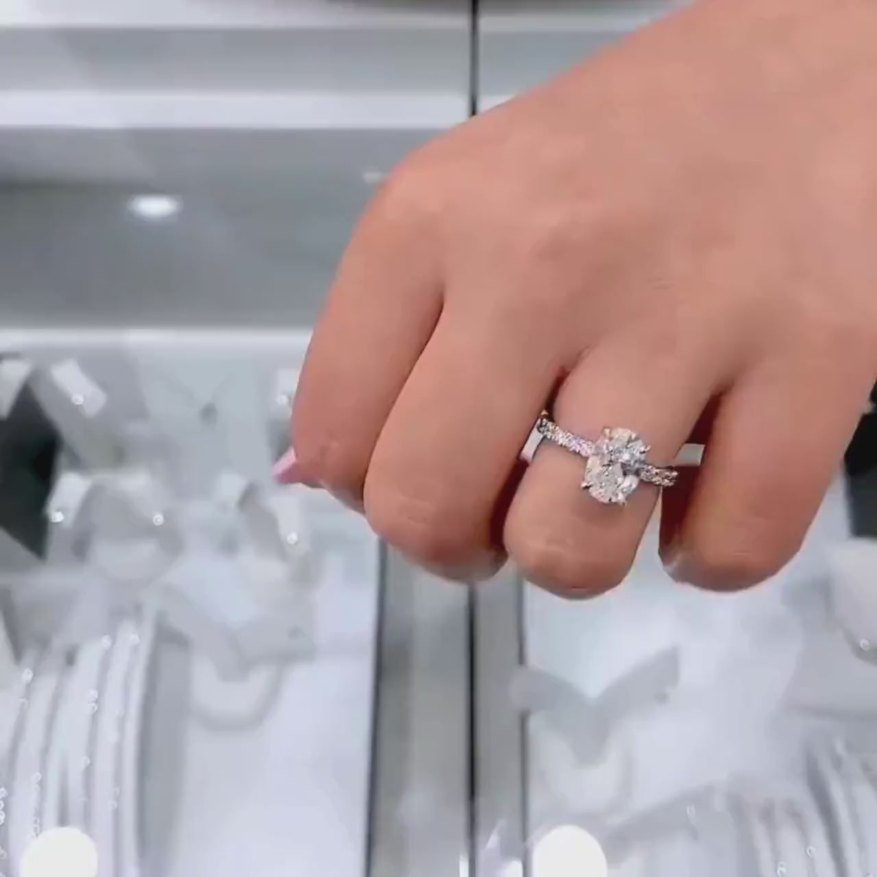 ● 2.00ct IGI-certified oval center + 0.30ct pavé & hidden halo