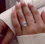 This 2.30tcw Oval Lab-Grown Diamond Engagement Ring features a 2.00ct center with hidden halo and round side stones. Set in white gold with IGI certified D-E-F color, VVS–VS clarity diamonds — ethically crafted and beautifully brilliant.