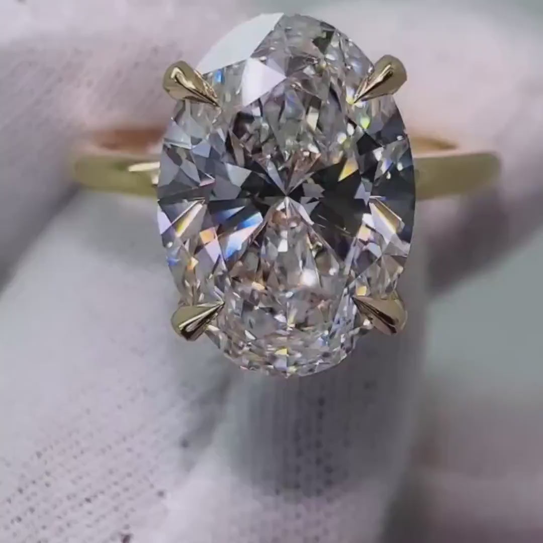 This 2.70tcw oval lab-grown diamond ring features a 2.50ct center stone with a hidden halo for added brilliance. IGI certified, D-E-F color, VVS–VS clarity, and handcrafted in white gold — a timeless yet modern solitaire for elegant brides.