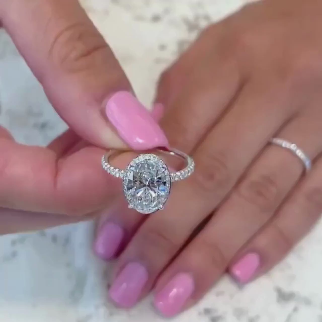 ✔ 2.50ct brilliant oval center + 0.50ct halo sparkle