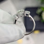 ● Design – Three-stone layout with sparkle-enhancing halo